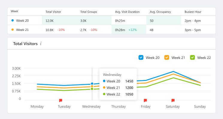 כמה מהנכנסים הגיעו לקופה? השוואה בין ימים, שעות וסניפים. זיהוי מיידי של בעיות שירות או מחיר.